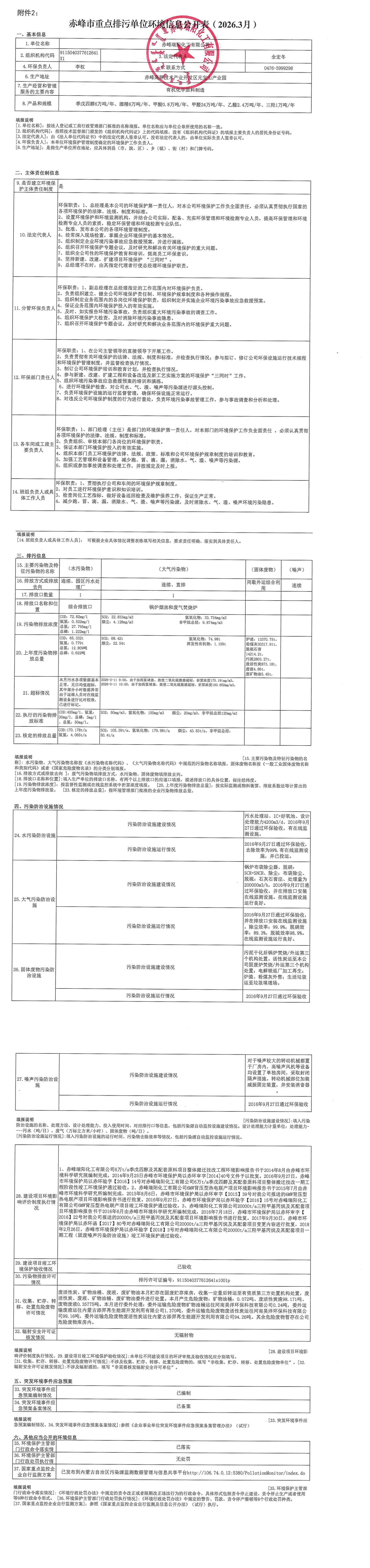 赤峰市重點排污單位環境信息公開表【2026.02】